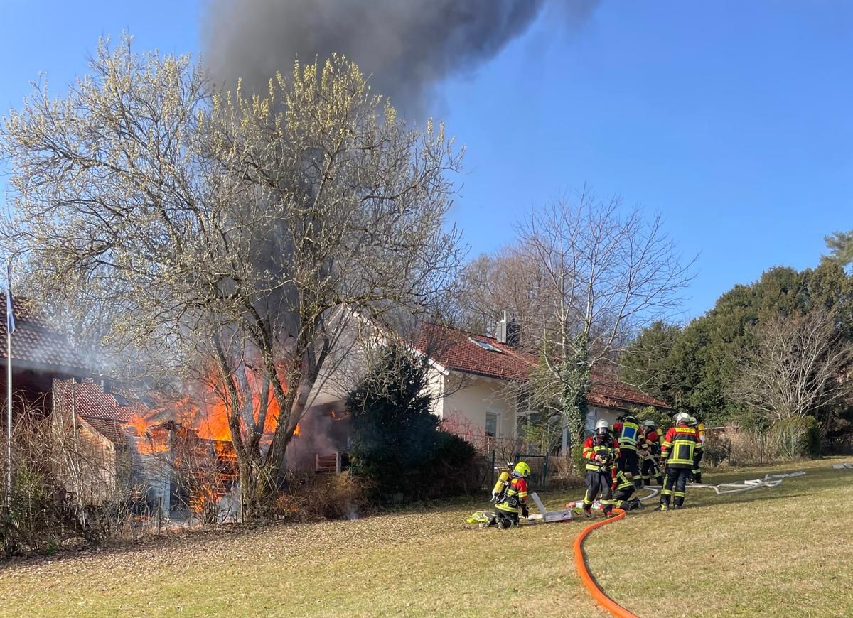 Bereits auf Anfahrt war eine deutliche Rauchentwicklung erkennbar. Bei Eintreffen der ersten Kräfte konnte ein in Vollbrand stehendes Gartenhaus festgestellt werden. Das Feuer drohte, auf das nahestehende Wohnhaus und ein weiteres, angrenzendes Gartenhaus überzugreifen. Deshalb wurden benachbarte Feuerwehren nachgefordert. Mit zwei Atemschutztrupps konnten wir im Erstangriff erfolgreich die angrenzenden Gebäude abschirmen und schützen. Am brennenden Gartenhaus entstand ein Totalschaden.